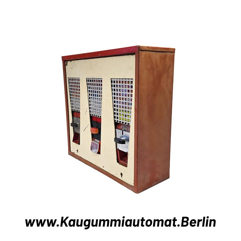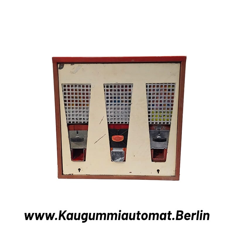 Gebrauchter 3-Schacht Kaugummiautomat mit Gitter – Vintage Patina – KGA013