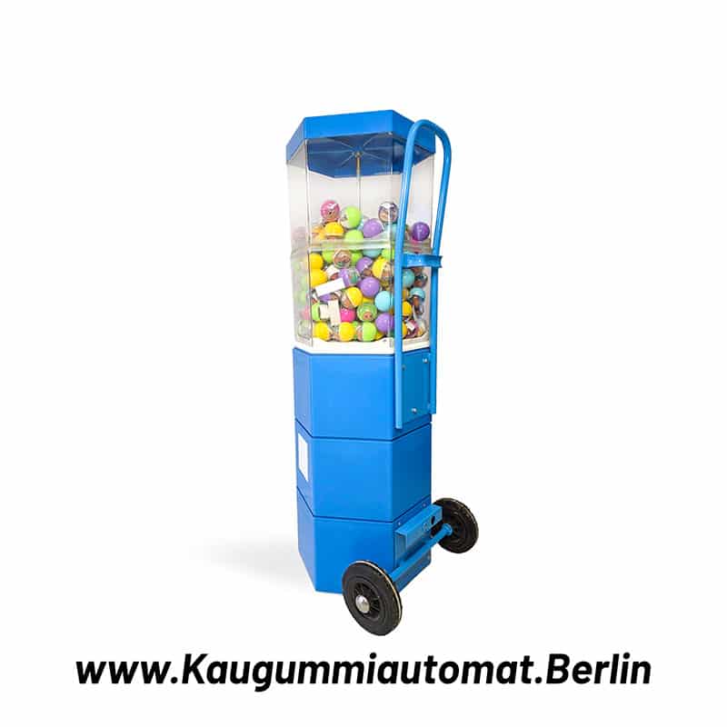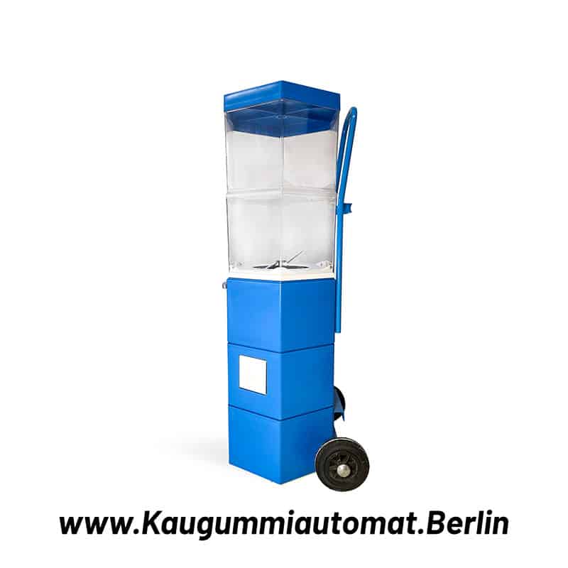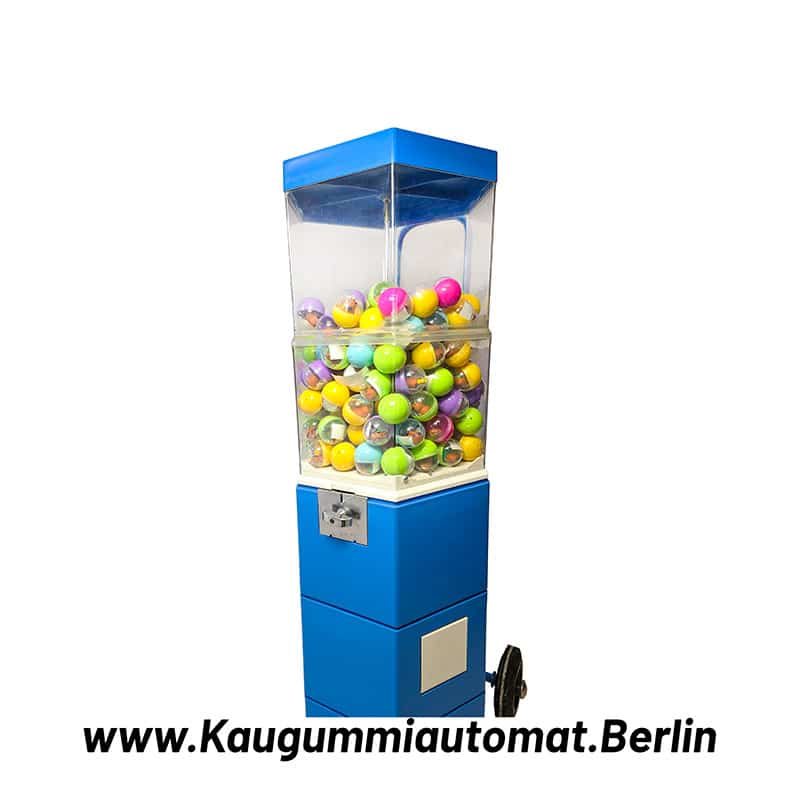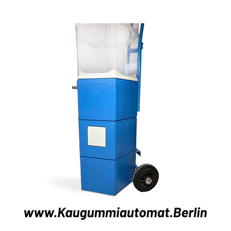 Flexibel & robust Der Automat lässt sich mit verschiedenen Münzeinwürfen betreiben: Sie können zwischen 1 €, 2 € oder einem freidrehenden Betrieb (ohne Geldeinwurf) wählen. Zwei integrierte Rollen ermöglichen das einfache Verschieben auf ebenem Boden – ideal, wenn Sie flexibel bleiben möchten.